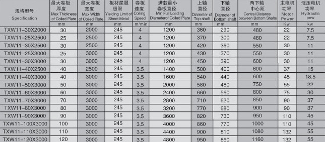 液压对称式三辊技术参数:
