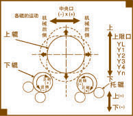 该机上辊可以垂直升降,垂直升降的液压传动,通过液压缸内的液压油作用活塞杆而获得;下辊作旋转驱动,通过减速机输出齿轮啮合,为卷板提供扭矩,下辊下部有托辊,并可调节。上辊呈鼓形状,提高制品的直线度,适用于超长规格各种截面形状罐体的卷制。